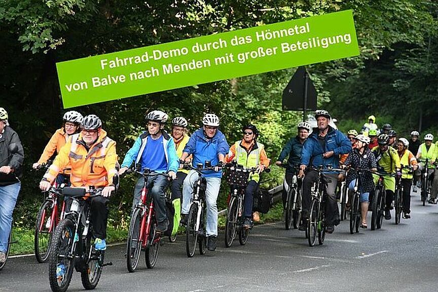 Unter dem Motto: „Für einen Hönnetalradweg - von der Quelle bis zur Mündung“. Der ADFC sieht den Bau dieses Radwegs als einen wichtigen Beitrag für eine echte Verkehrswende zum Schutze des Klimas.